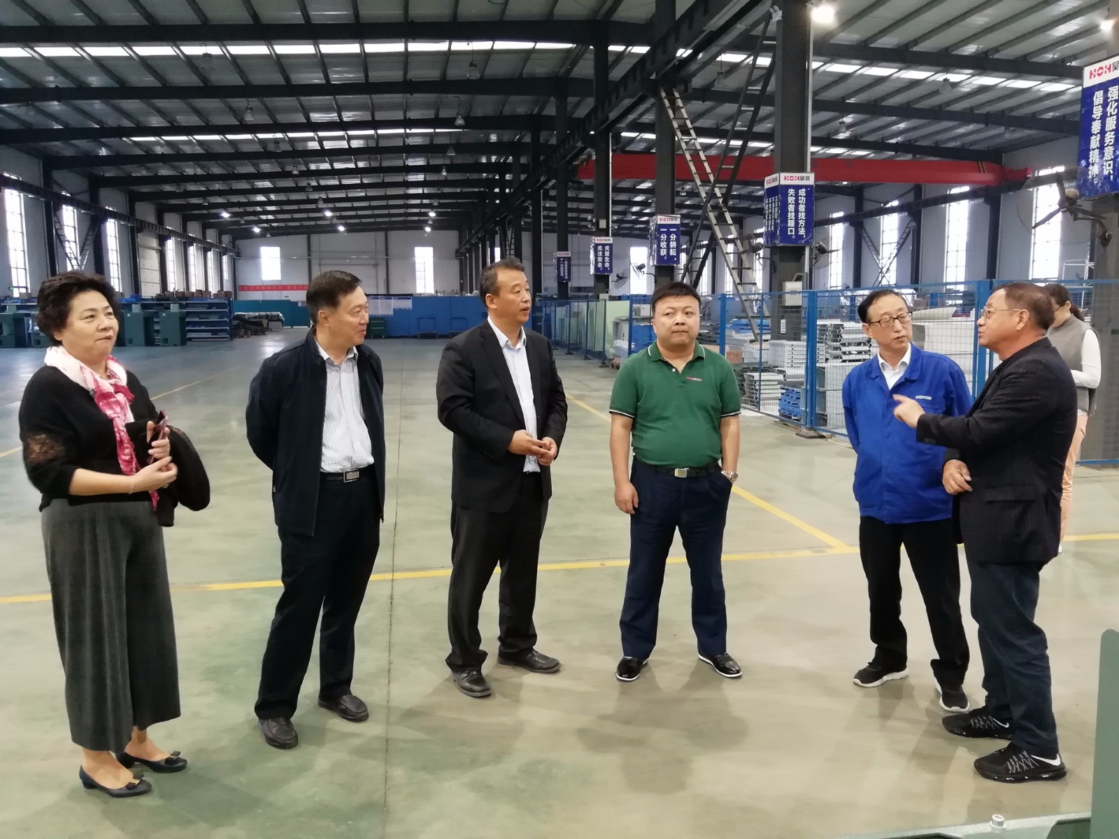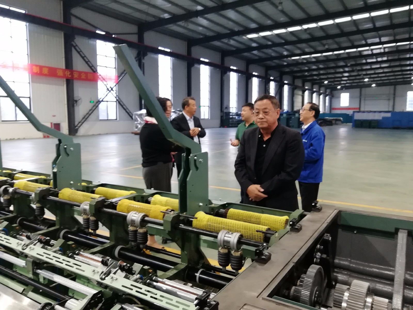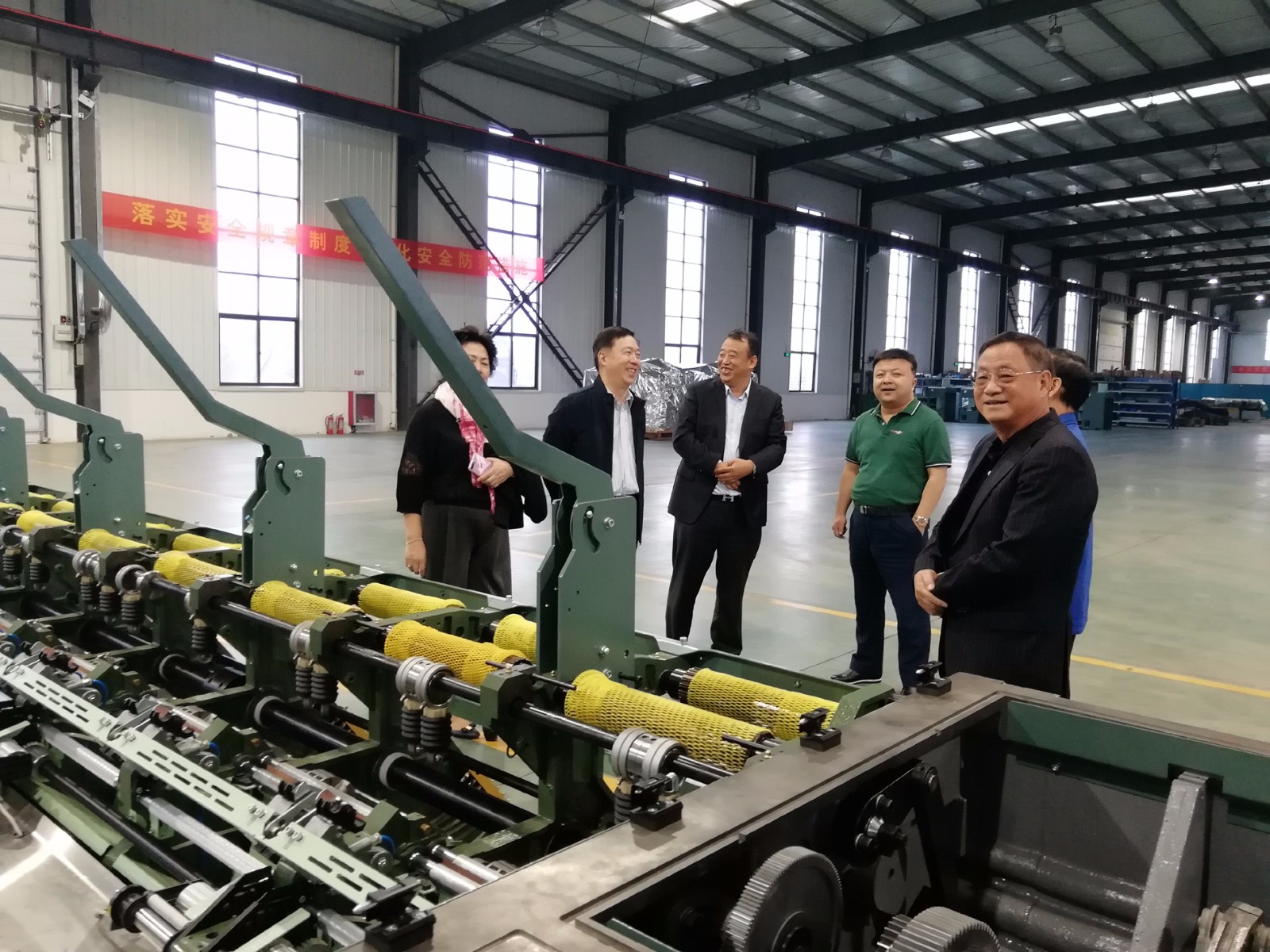 在昊昌精梳董事长马驰先生的引领下,毛会长等一行参观了昊昌精梳设备生产线。